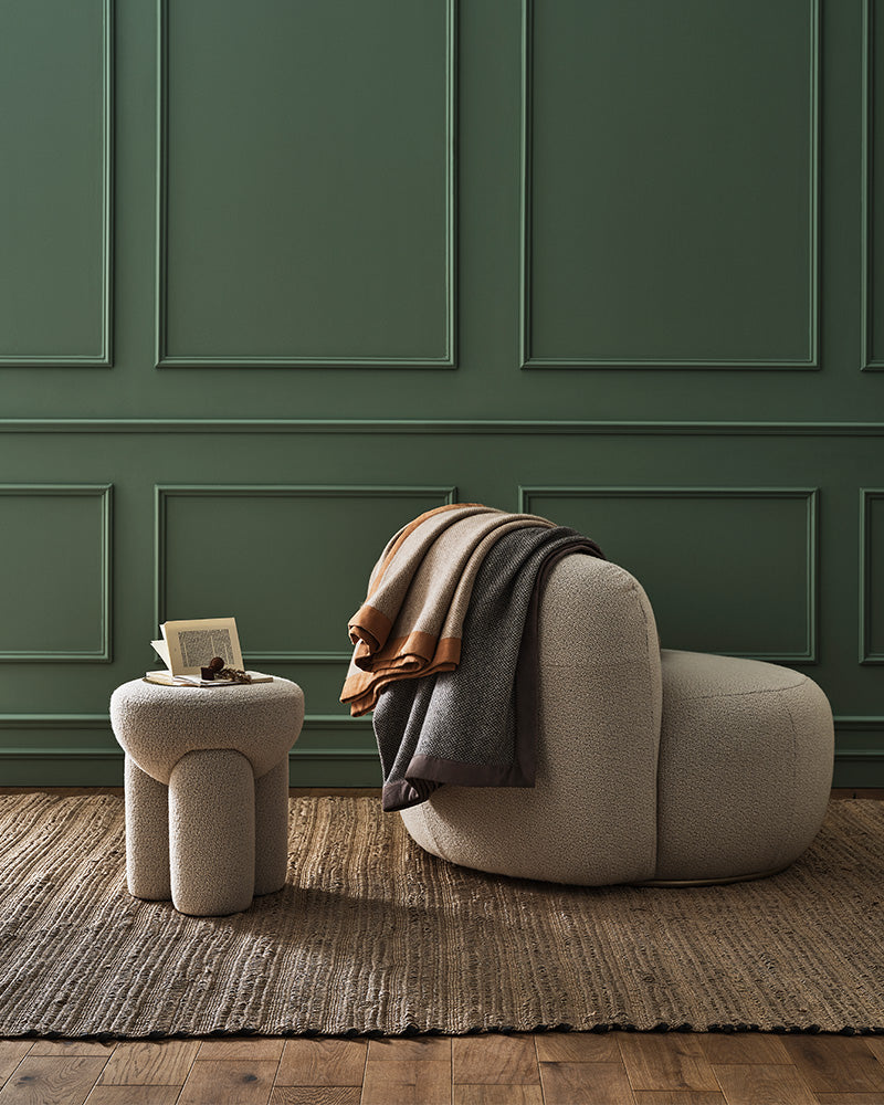 The Douglas is a characterful and sculptural piece, a versatile boucle pouf designed to move around the room and adapt to any need. This object acts as a comfortable seat, a chic footrest, or a convenient side table for whoever needs it, making it a must for any space where people gather together.