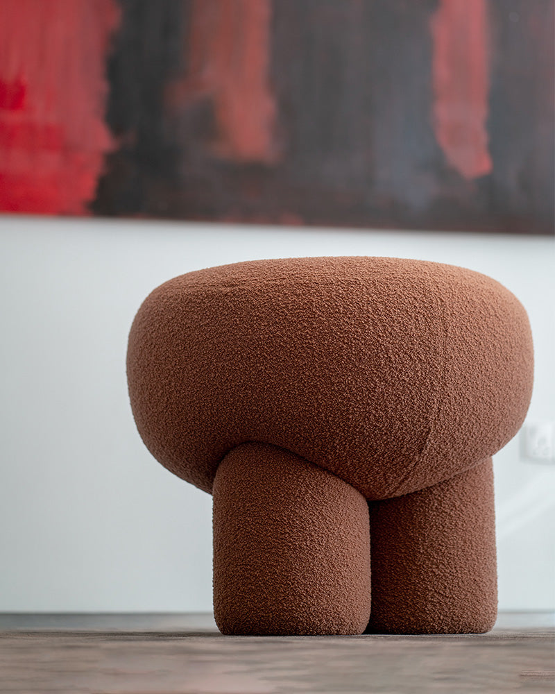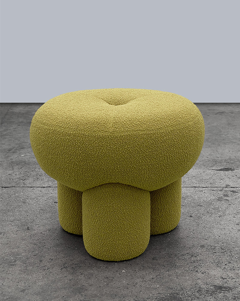 Wood & Fabric Pouf is at the core of the design, giving the piece its specific weight and character. Handcrafted in Italy, the piece is engineered for long-lasting comfort and visual impact. Every curve and seam is carefully studied so that the Ollie looks generous from every angle while remaining perfectly functional in everyday use.