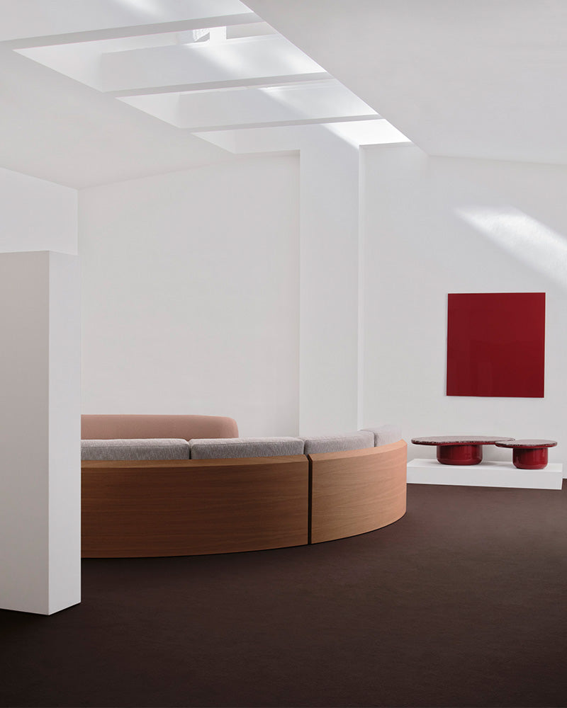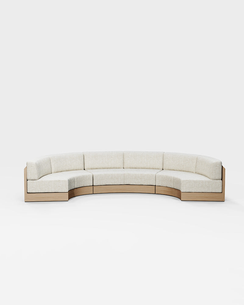 The Serra Sofa is an elegant seating system that plays on notions of tradition and innovation, a unique curved sectional sofa for the contemporary home. With a minimal and restrained wood veneer frame, the Serra features a meandering back that twists and turns, creating inward-facing compositions that encourage users to come together and connect.