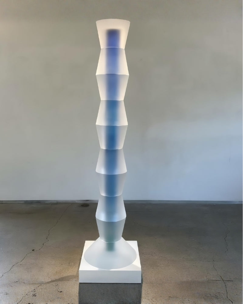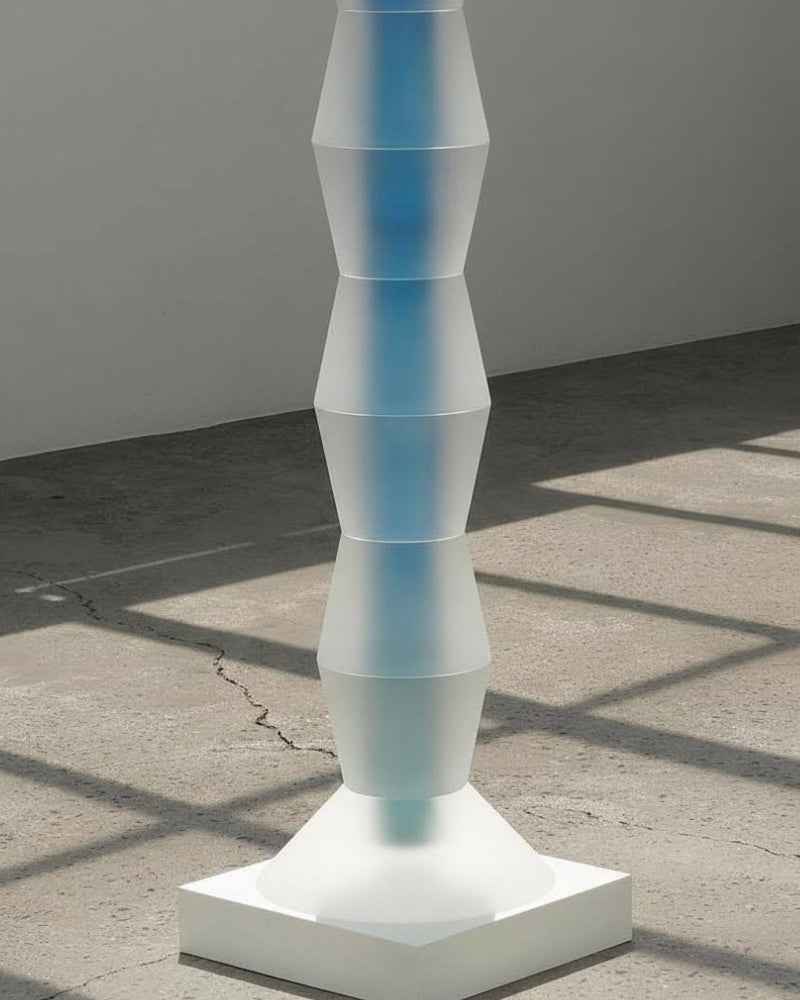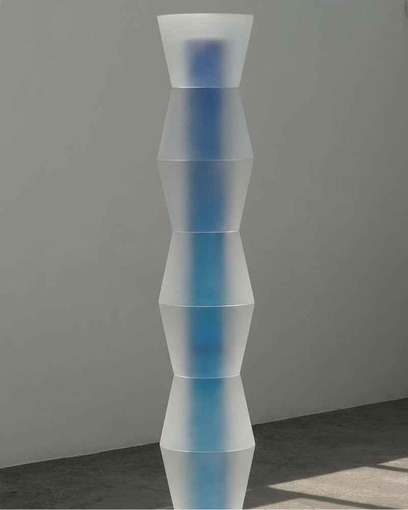 The Prayer Totem IV by Saerom Yoon is a monumental sculpture and a profound exploration of verticality and rhythm. Standing at nearly two meters tall, this limited-edition masterpiece deviates from pure transparency to embrace a frosted, ethereal finish that diffuses light, creating a calm, meditative presence in any space.