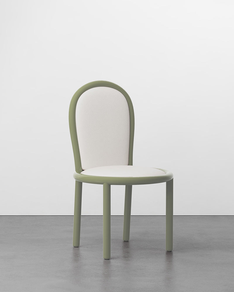 The Masa is a familiar friend, a reassuring and inviting designer dining chair that is a testament to contemporary production capabilities. This piece stands as a characterful seat with a playful profile, constructed from bent solid wood and coated in a heavy, luxurious lacquer.