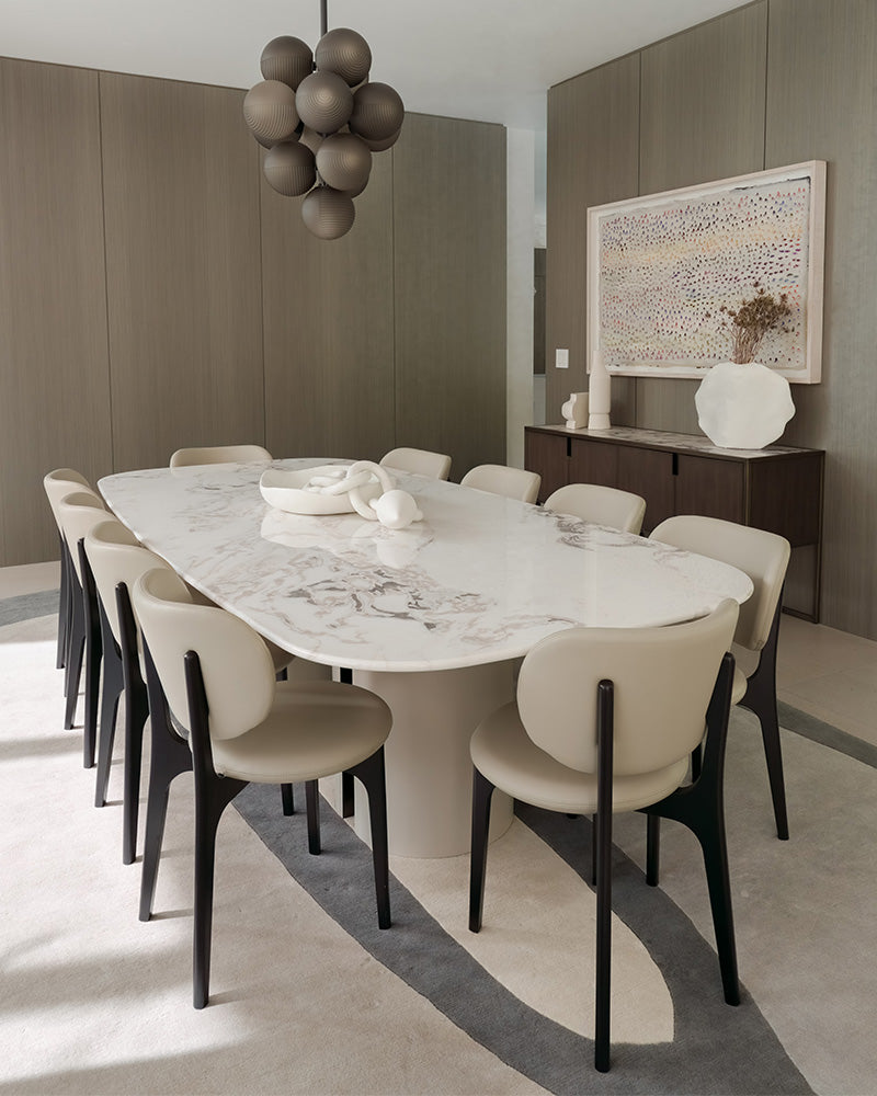 The Richmond is a sculptural boucle dining chair designed to bring softness and presence to contemporary interiors. More than just a dining chair, its generous volumes and balanced proportions invite a relaxed yet refined posture, making it the perfect seat for long, enjoyable meals.