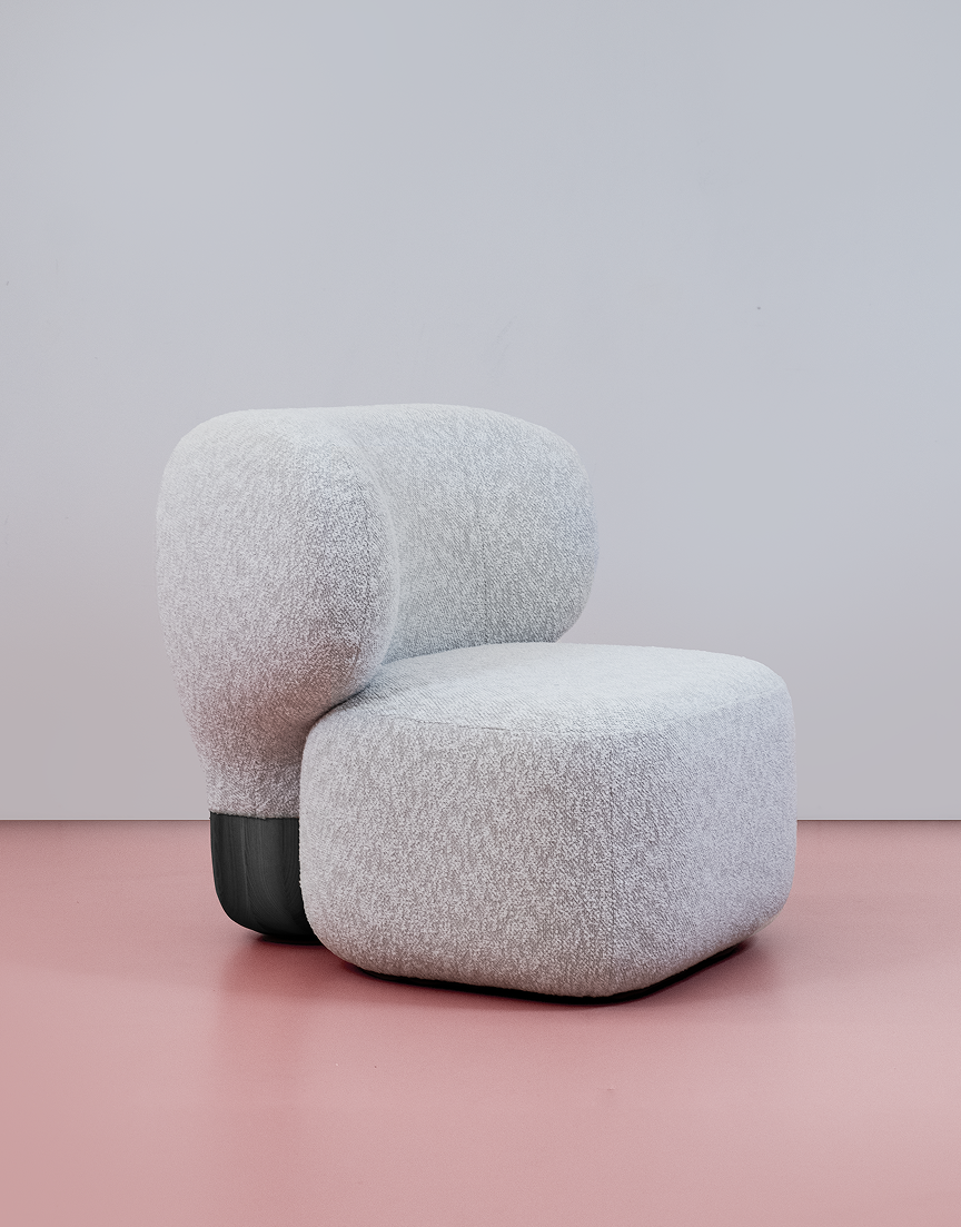 The Asawa is a masterpiece of organic form, a unique designer lounge chair characterized by its sculptural back which seems to have grown from the ground up. This piece is a testament to fluid, biomorphic design, with a curving and enveloping structure that rests on a solid wood base, creating an object of art that is beautiful from every angle.