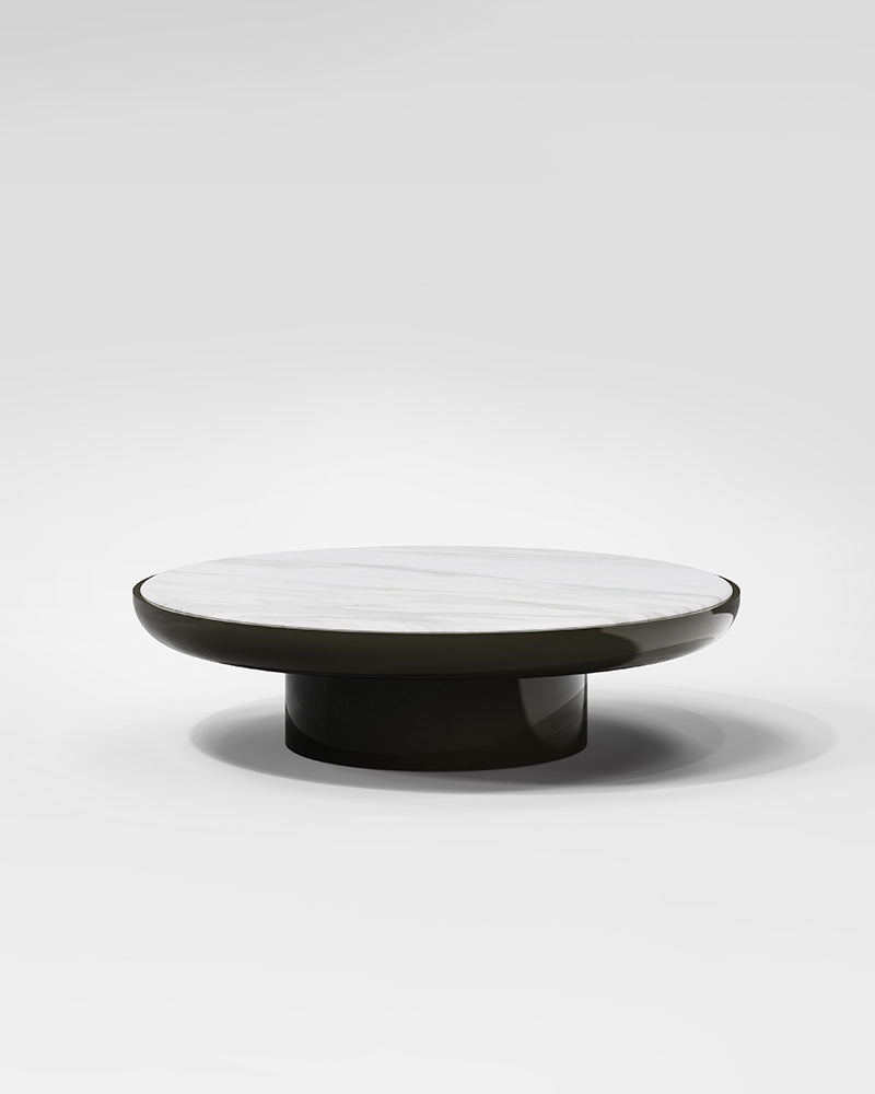The Romo represents a floating island of pure form and function, a substantial and intricately detailed designer coffee table for the contemporary living space. Available in two generous sizes, the Romo combines a monolithic lacquered wood base with a contrasting insert of either premium marble or solid wood.